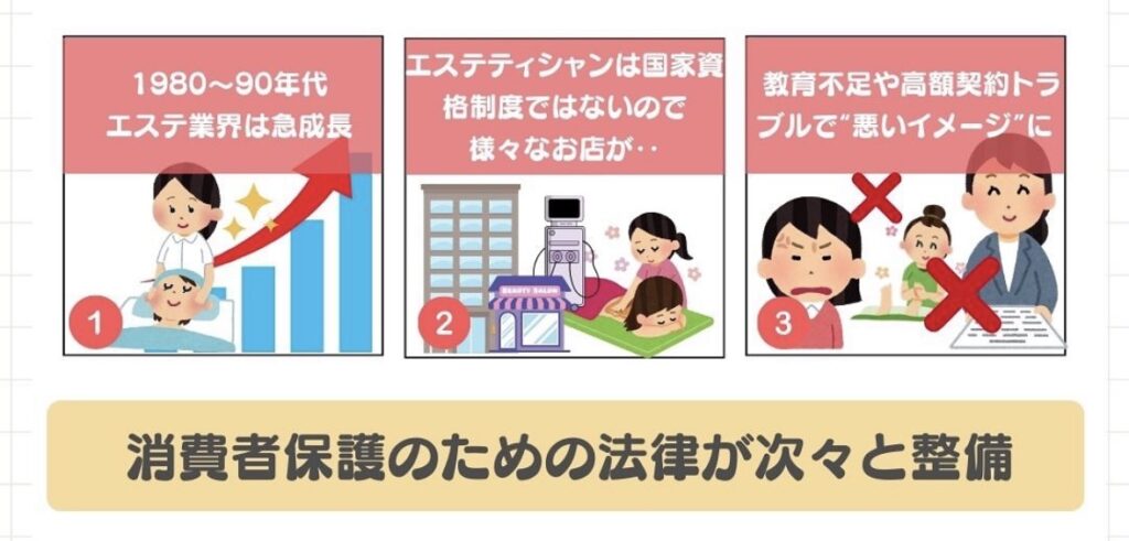 その裏で「短期間の教育で施術」「高額契約によるトラブル」が社会問題となりました。