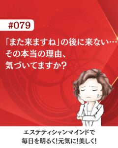 新サイズ Instagram投稿画像 (1080 x 1350px) (7) 2025年9月1日 WRITER kanri@youplando この記事を書いている人 - WRITER - kanri@youplando この記事を書いている人 - WRITER - kanri@youplando 関連記事 - Related Posts - ポッドキャスト番組 096.不安を先回りして安心に変える——リピーターが増えるサロンの心遣いが配信されました。 ポッドキャスト番組 057.エステティックサロン集客の極意!プル型 vs プッシュ型戦略とは?が配信されました。 BWJ東京 業界団体セミナーのお知らせ ポッドキャスト番組 078.サイレントカスタマーを防ぐ!表情ひとつで変わる信頼と売上が配信されました。 最新記事 - New Posts - 【TRENDNEWSCASTER】に記事が掲載されました✨📣 ポッドキャスト番組 102.祝100回!草野由美子の意外な原点~Part3~が配信されました。 ポッドキャスト番組 101.祝100回!草野由美子の意外な原点~Part2~が配信されました。 ポッドキャスト番組 100.祝100回!草野由美子の意外な原点~Part1~が配信されました。 - Comments - コメントをキャンセルメールアドレスが公開されることはありません。 ※ が付いている欄は必須項目ですコメント ※ 名前 ※ メール ※ サイト 次回のコメントで使用するためブラウザーに自分の名前、メールアドレス、サイトを保存する。 Δ