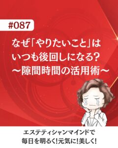 新サイズ Instagram投稿画像 (1080 x 1350px) (7) 2025年10月27日 WRITER kanri@youplando この記事を書いている人 - WRITER - kanri@youplando この記事を書いている人 - WRITER - kanri@youplando 関連記事 - Related Posts - ポッドキャスト番組 #020先生、ごめんなさい。が配信されました。 ポッドキャスト番組 092.AI時代になっても変わらないビジネスの鉄則とは?が配信されました。 ビューティーワールドジャパン大阪「美容機器購入の相談コーナー」無料相談開催 ポッドキャスト番組 083.エステティック業界の未来はどうなる?~安全と信頼のサロン経営へ~が配信されました。 最新記事 - New Posts - ポッドキャスト番組 098.安心こそ最強の集客力-「エステティックJIS」が証明する信頼の基準が配信されました。 ポッドキャスト番組 097.技術でも接客でもない——失客を招く「不明瞭な会計」という落とし穴が配信されました。 ポッドキャスト番組 096.不安を先回りして安心に変える——リピーターが増えるサロンの心遣いが配信されました。 ポッドキャスト番組 095.エステティシャンに必要な「指導」と「支援」を使い分ける応用力が配信されました。 - Comments - コメントをキャンセルメールアドレスが公開されることはありません。 ※ が付いている欄は必須項目ですコメント ※ 名前 ※ メール ※ サイト 次回のコメントで使用するためブラウザーに自分の名前、メールアドレス、サイトを保存する。 Δ