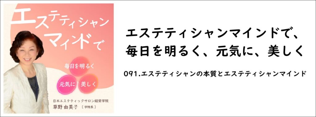 ポッドキャスト番組 091.エステティシャンの本質とエステティシャンマインドが配信されました。