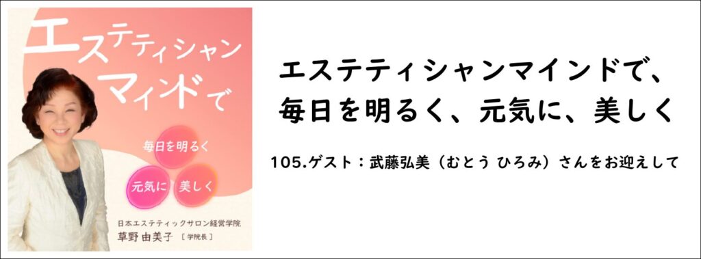 ポッドキャスト番組 105.ゲスト:武藤弘美(むとう ひろみ)さんをお迎えしてが配信されました。